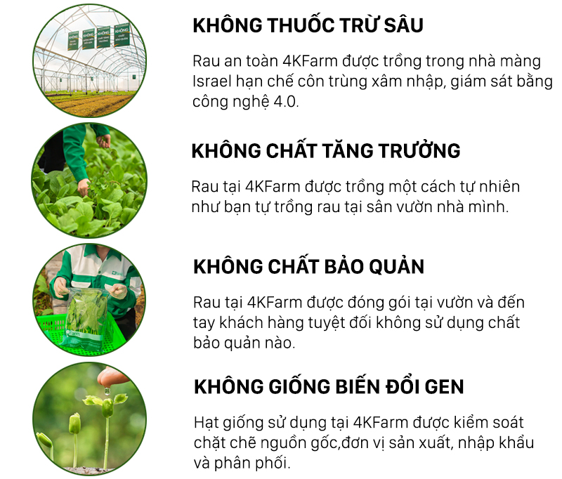 4KFarm là THÀNH VIÊN MỚI của tập đoàn Thế Giới Di Động, tiền thân là Vifarm. Đội ngũ chuyên gia về nông nghiệp của 4KFarm chuyển giao công nghệ và hỗ trợ nông dân trồng rau an toàn 4 KHÔNG và thu mua 100% sản lượng rau an toàn này cung cấp độc quyền cho chuỗi Bách Hóa Xanh.